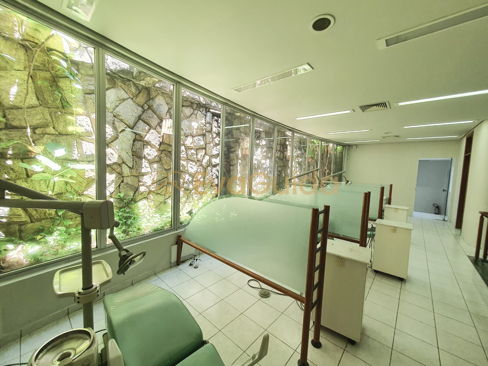 Assobradado adaptado para consultório odontológico, com 270m² em Moema. No piso térreo tem recepção, um escritório, 5 banheiros, 2 copas, sala para financeiro, deposito e lavanderia. No piso superior fica, um laboratório, sala de raio X, sala para servidor, sala de atendimento para 5 cadeiras e 2 consultórios individuais. Ar condicionado central e 3 vagas de garagem.